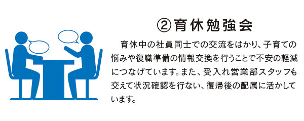 入社後5年間は年次研修があり、同期社員とのディスカッションや先輩社員との交流を行います。研修の中で、同期と悩みを共有したり、実際に仕事を通して成功した体験などを共有することで、次のステップアップにつなげていきます。同期と支え合いながら、自分自身を振り返り、未来にむけてキャリア・ライフプランを描く研修です。