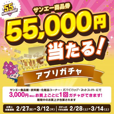 サンエー55周年記念!55,000円が当たる!アプリガチャ