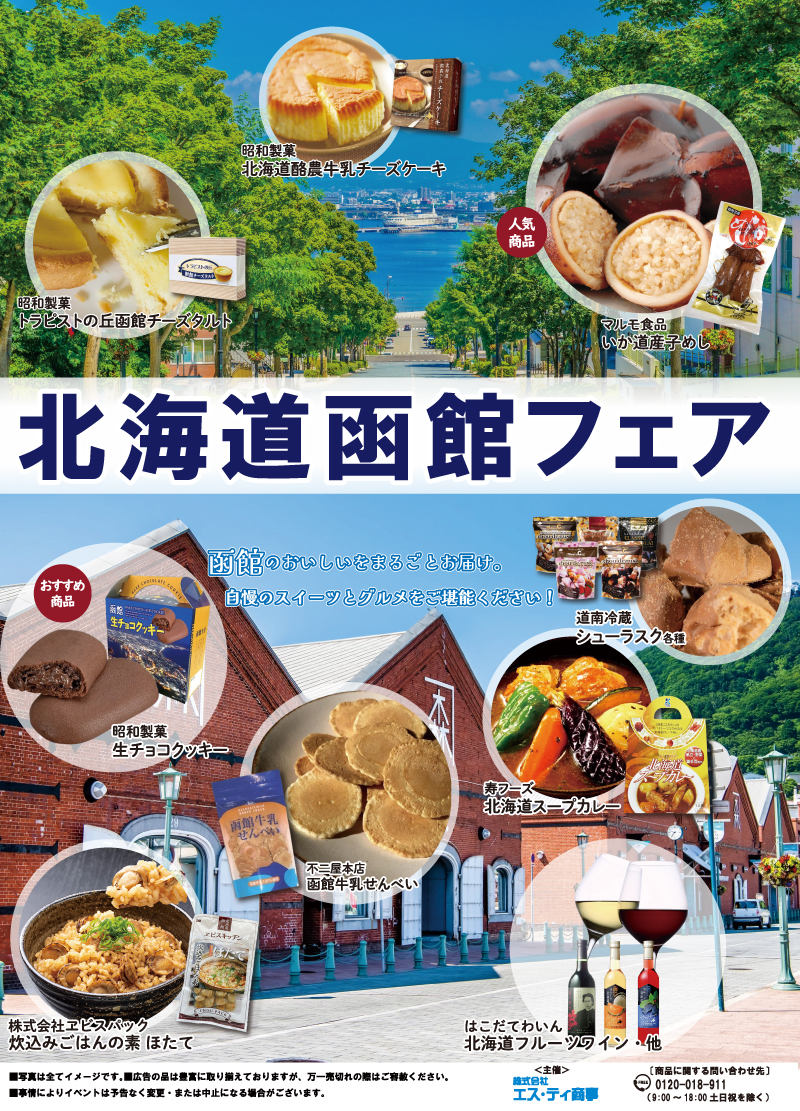 北海道函館フェア 開催日時開催店舗2/19(木)~2/24(火) 10:00~20:00(最終日18:00)具志川メインシティ (1Fメインコート)2/26(木)~3/3(火) 10:00~20:00(最終日18:00)石川シティ (1F中央コート)