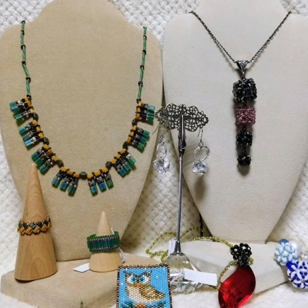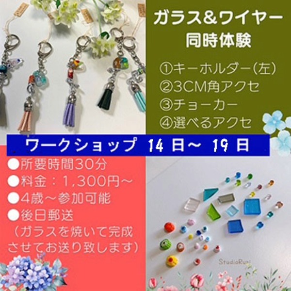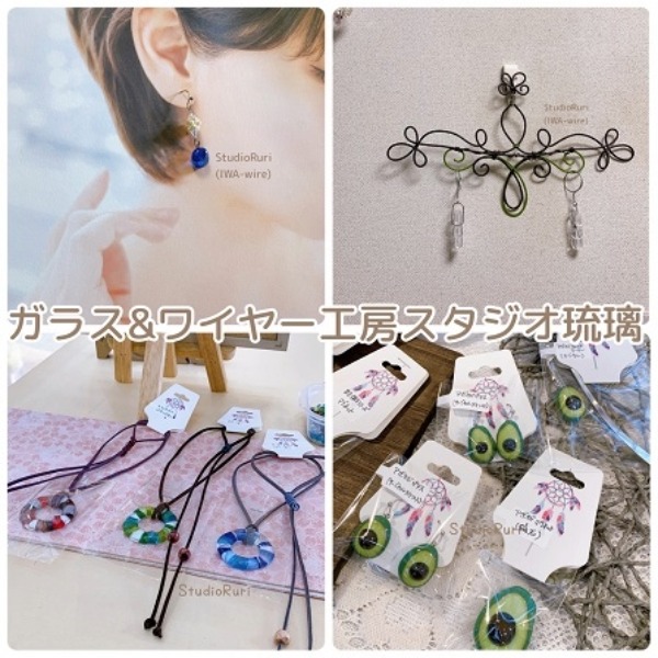 ヴェネチアンガラスとワイヤークラフトを中心に全て手作りしているオリジナル商品をご用意致しました。ガラスのネックレス・ピアス・イヤリング・指輪・ゴルフマーカー・小皿・箸置きやワイヤー雑貨など1点物が揃っております。