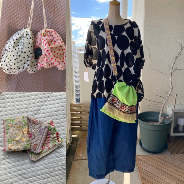 また、布バック、布小物、アクセサリー、新たにワンピースやチュニックなど色々な物をとり揃えております。