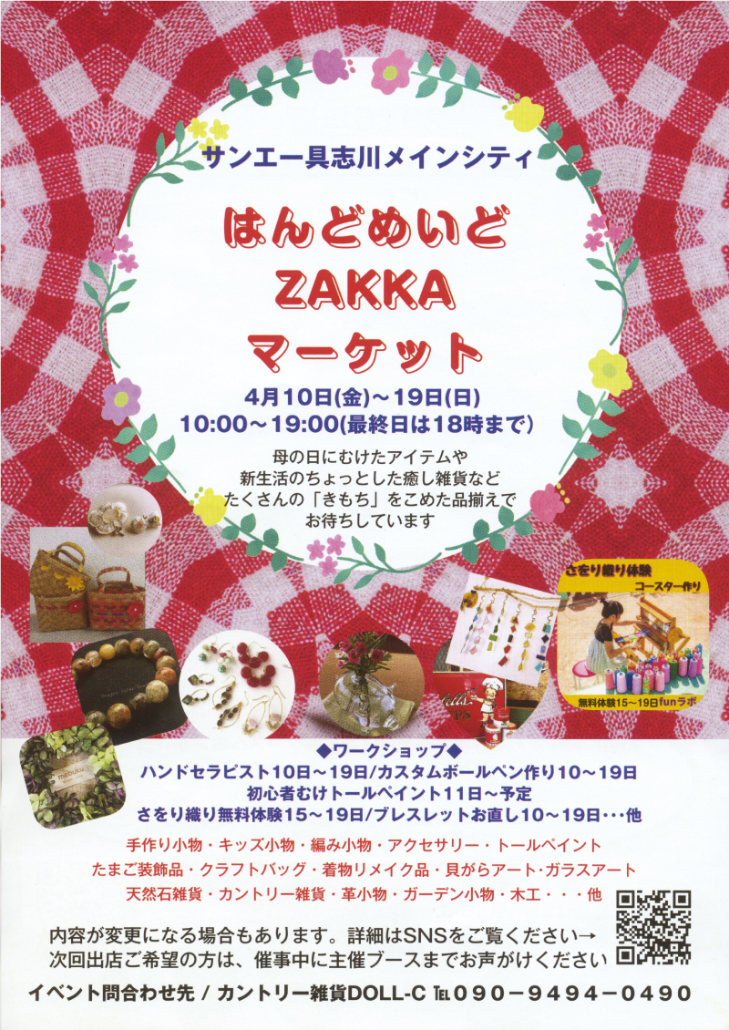 手作りの小物やカントリー雑貨、木工/ホーロー雑貨/ドールなどたくさんのアイテムを豊富に販売致します!イベント限定〜お買い得な雑貨setも並びます☆