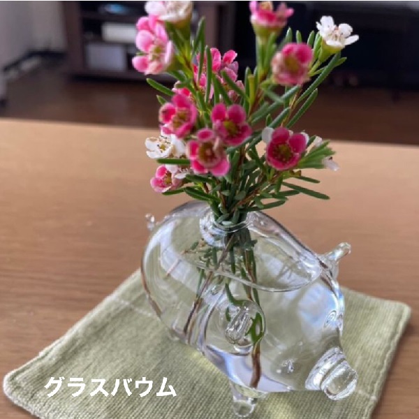 1点モノのワイングラスや、一輪挿し音色が心地よい風鈴などシンプルな中に透き通るガラスの魅力を込めた作品をご覧ください☆ブタさん一輪挿しは大人気作品です!お見逃しなく〜
