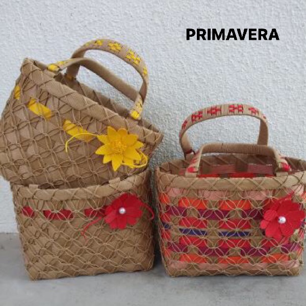 クラフトテープを丁寧に編み込んでバスケットやお洒落なバッグ、ティッシュBOX、小物雑貨を