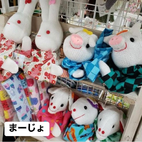 布小物を中心に、日常に重宝するポーチやバッグ、肌に優しいガーゼ商品などが並びます。懐かしいお手玉や軍手人形はイベントでも人気な商品でお勧めです☆