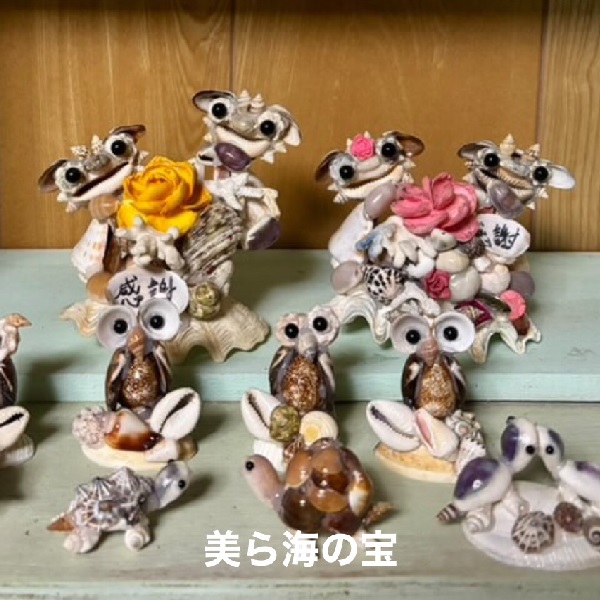 貝がらを丁寧に加工した亀やフクロウ、鳥などをモチーフに飾って可愛い、貝がら雑貨を販売!