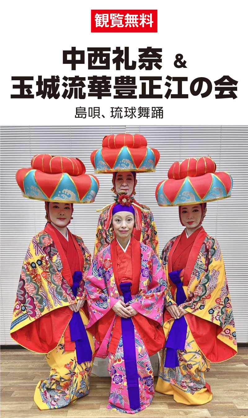 中西礼奈&玉城流華豊正江の会 開催日開催店舗1/2(金) 11:00西原シティ (1Fエディオン側コート)1/2(金) 14:00宜野湾コンベンションシティ (2Fはごろもコート)1/2(金) 17:00しおざきシティ (1Fエディオン側イベント広場)