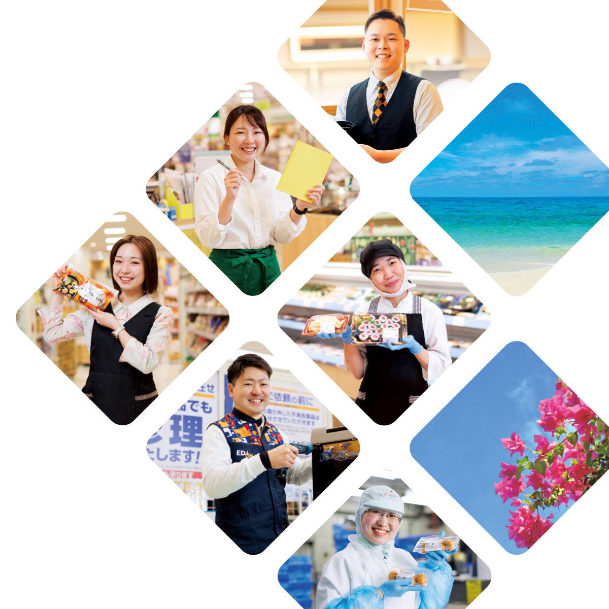 社員が安心して働き活躍できる環境を目指して、国が定めている法律に加え、サンエーらしい制度づくりに取り組んでいます。小売業は「変化対応業」。これからも時代に合わせて変化に対応し、「幸せを共感する」企業を目指します。
