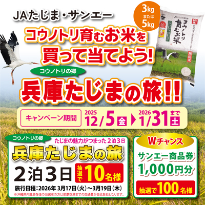 コウノトリ育むお米を買って当てよう!兵庫たじまの旅キャンペーン