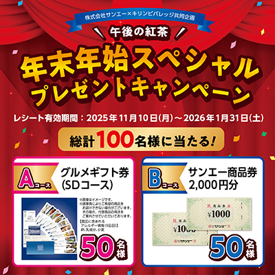 キリンビバレッジ「午後の紅茶」年末年始スペシャルプレゼントキャンペーン