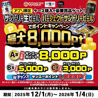 ケース購入でポイントゲット!サントリー生ビール・パーフェクトサントリービールでポイントキャンペーン