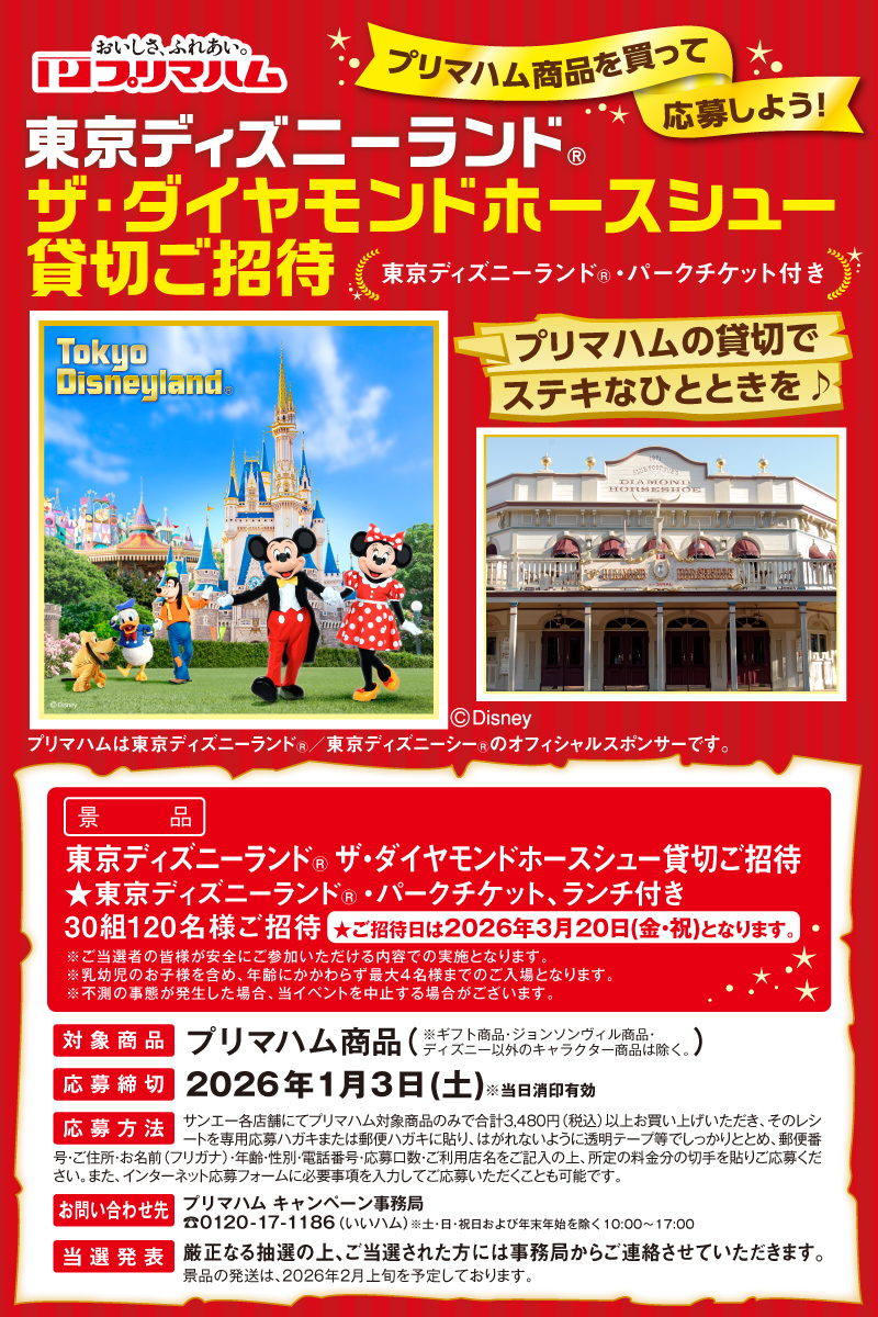 プリマハム東京ディズニーランド®ザ・ダイヤモンドホースシュー貸切ご招待