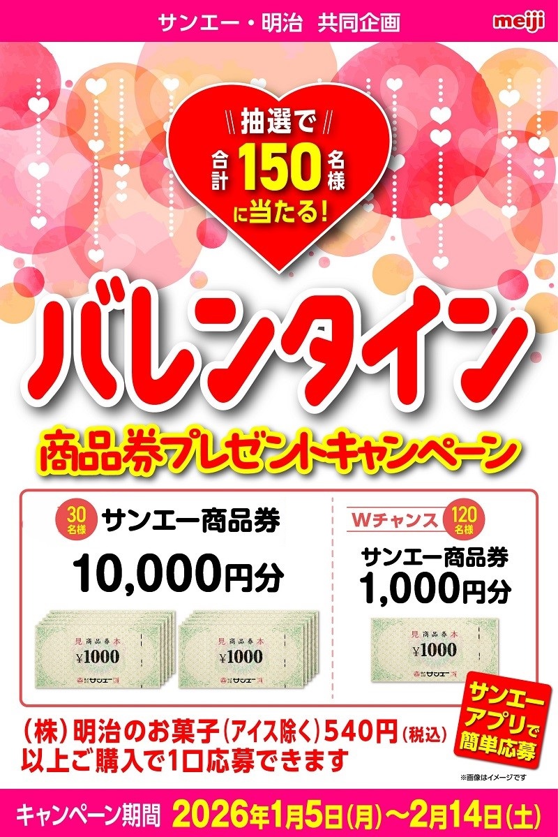 ■サンエーアプリで応募!サンエー・明治 バレンタイン 商品券プレゼントキャンペーン