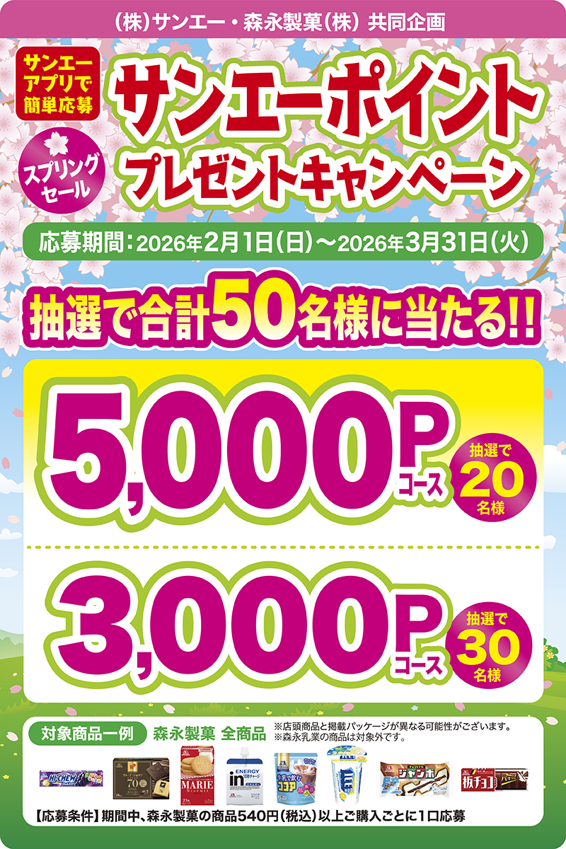 ■サンエーアプリで応募!サンエー・森永製菓 サンエーポイントプレゼント_スプリングキャンペーン
