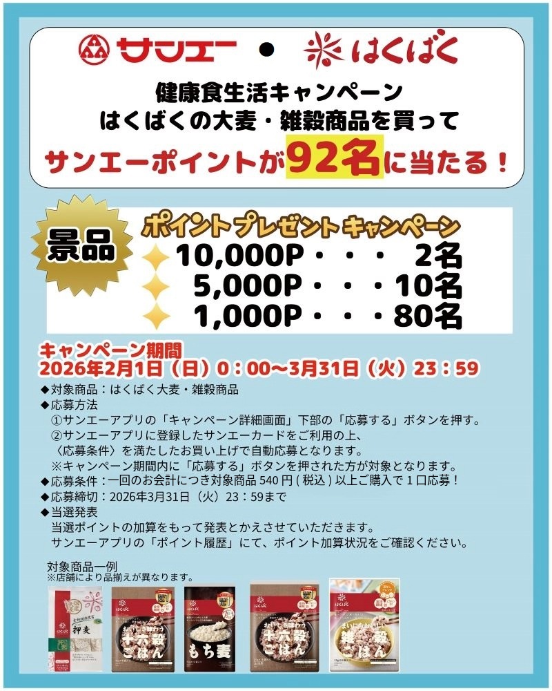 ■サンエーアプリで応募!はくばく 健康食生活キャンペーン