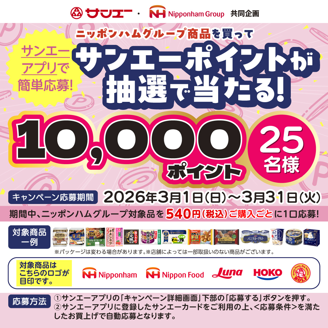 ■サンエーアプリで応募!ニッポンハムグループ商品を買ってサンエーポイントが当たる!