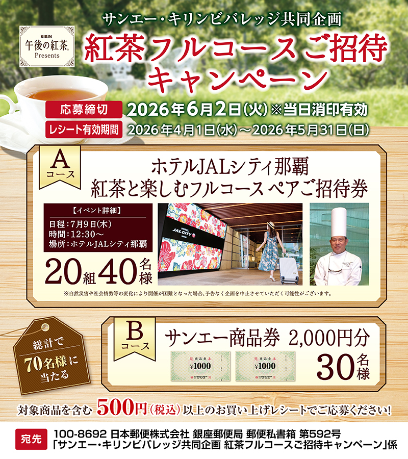 サンエー・キリンビバレッジ共同企画 紅茶フルコースご招待キャンペーン