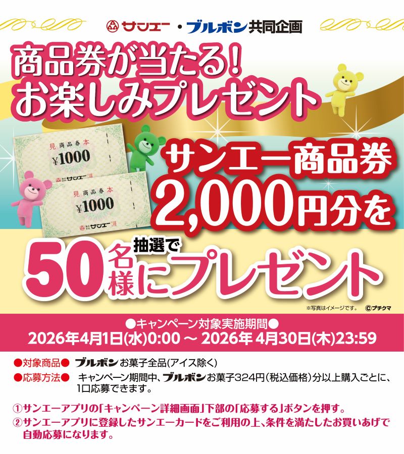 ■サンエーアプリで応募!ブルボン サンエー商品券が当たる!お楽しみプレゼントキャンペーン