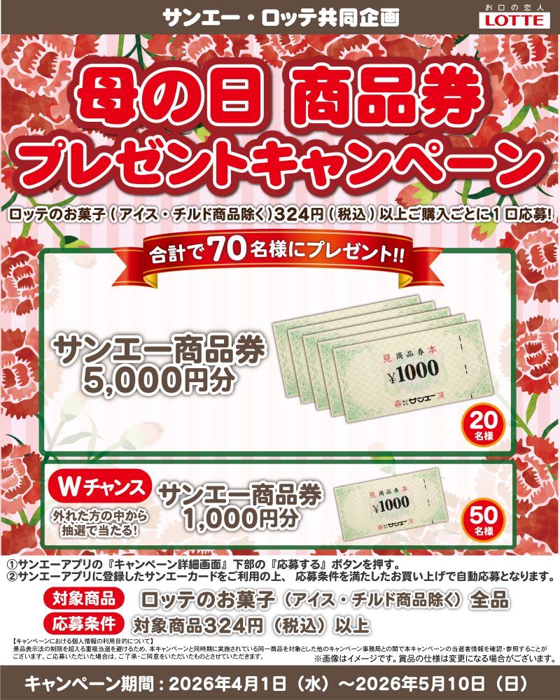 ■サンエーアプリで応募!サンエー・ロッテ 母の日商品券プレゼントキャンペーン