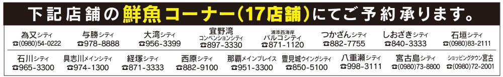 ご予約はアプリまたは下記店舗の鮮魚コーナーにて