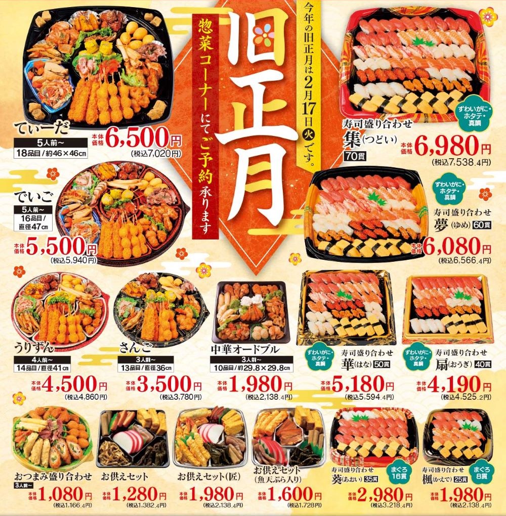 2026旧正月用オードブル・お寿司・刺身・重箱ご予約承ります
