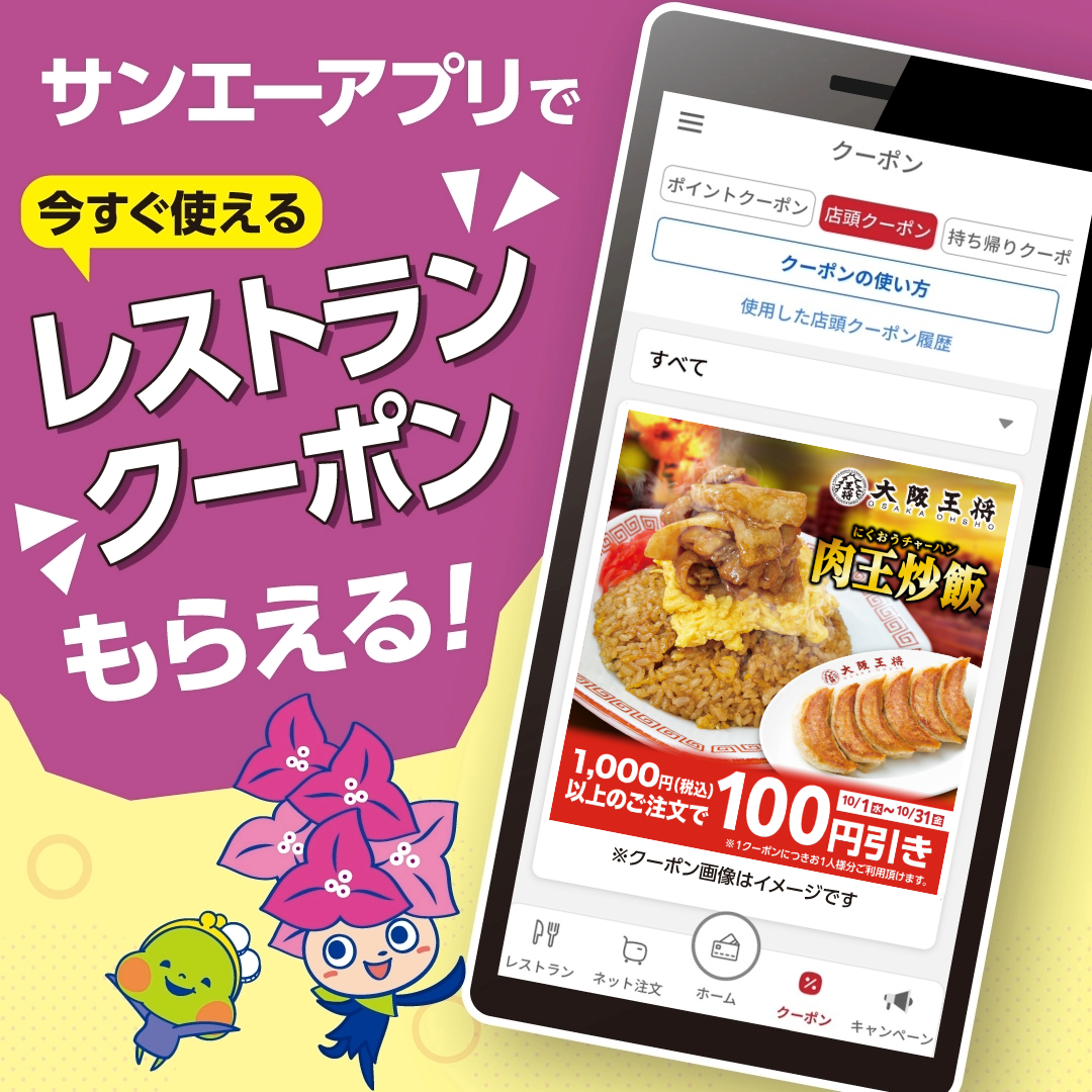 ■【10月】サンエーアプリでレストラン店頭クーポンもらえる!