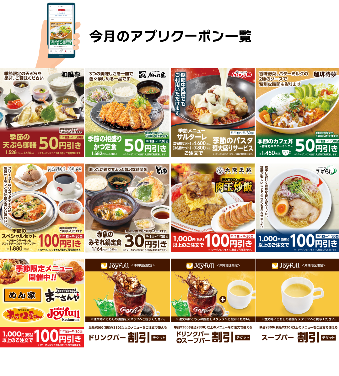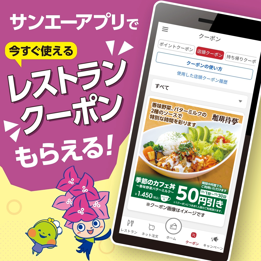 ■【11月】サンエーアプリでレストラン店頭クーポンもらえる!