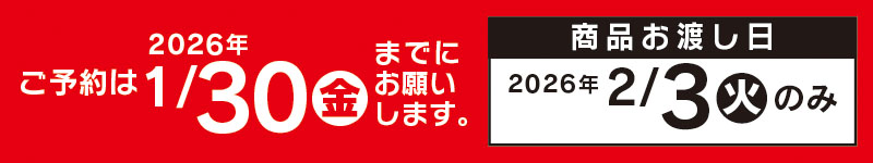 ※受注生産につき、ご予約後のキャンセル・変更は、1/30(金)までにお願いします。