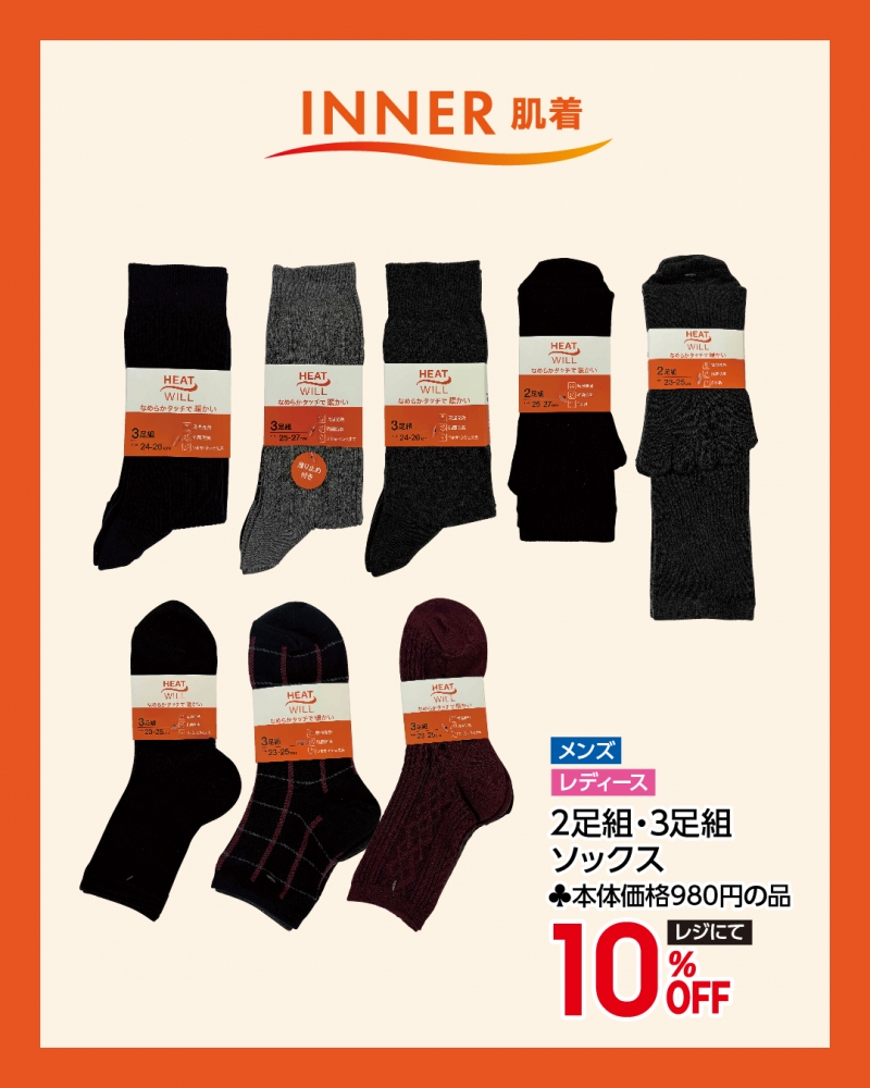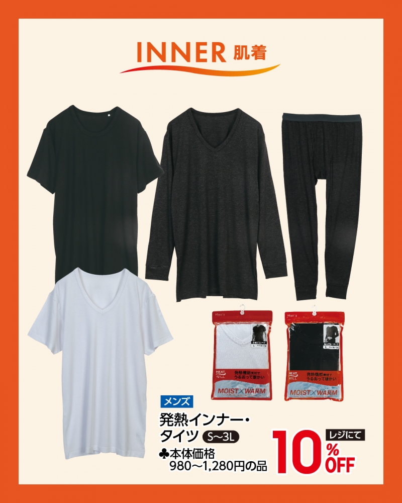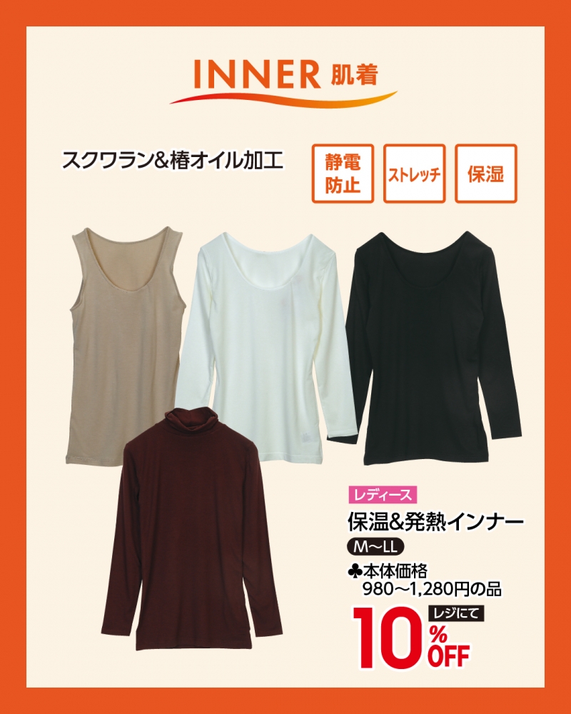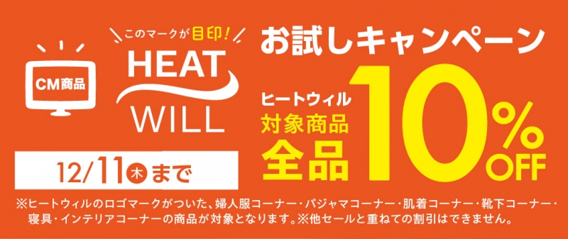 ヒートウィル お試しキャンペーン 衣料広告売り出し期間 12/5(金)~12/11(木)▽対象商品 一例 さらに!!12/5(金)~12/11(木)の期間は【衣料館】サンエーポイント5倍!!この機会にぜひ、サンエー衣料館へお越しください♪ ▶サンエー衣料 店舗一覧はこちら サンエー ヒートウィル