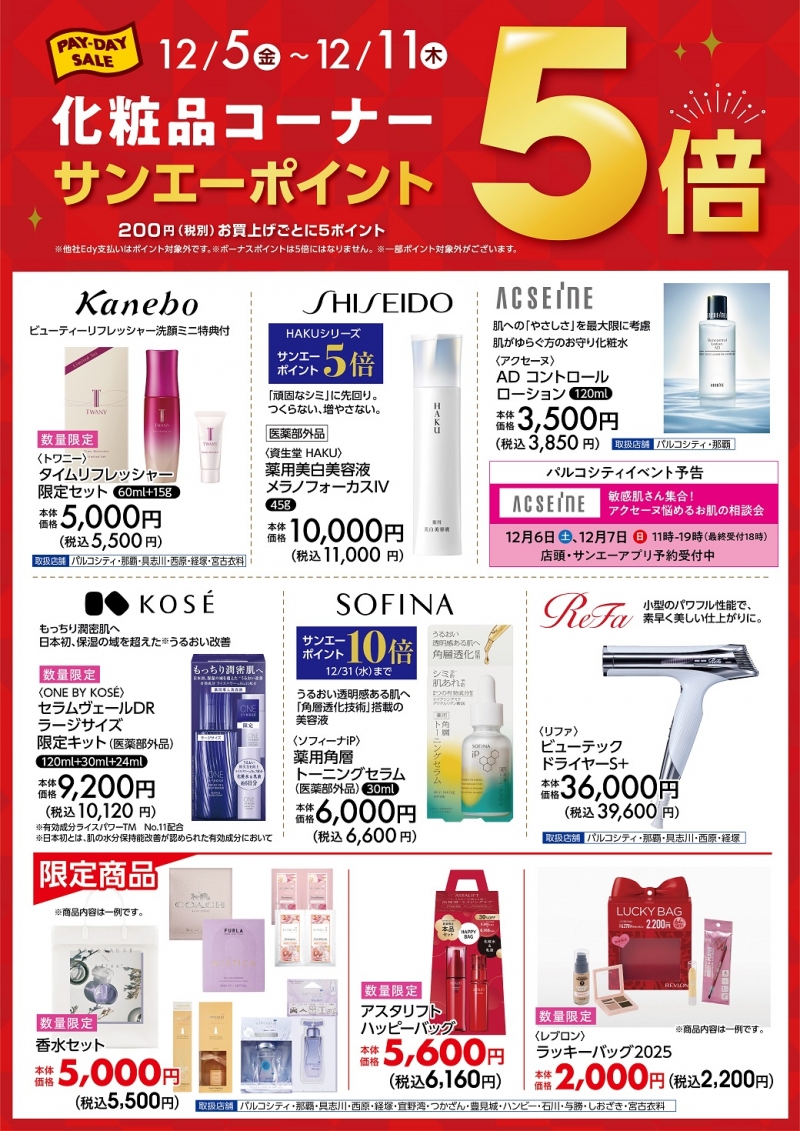 衣料館・化粧品コーナーサンエーポイント5倍✨