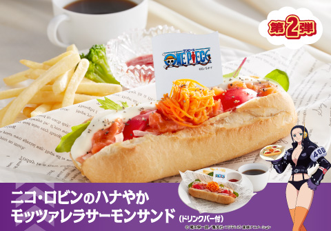 ロビンのハナハナの実をイメージしたドッグサンド。サーモンと彩り鮮やかな食材でハナ(華)やかさを表現しました。ロビンの好きな「コーヒー」とも相性ぴったりです。