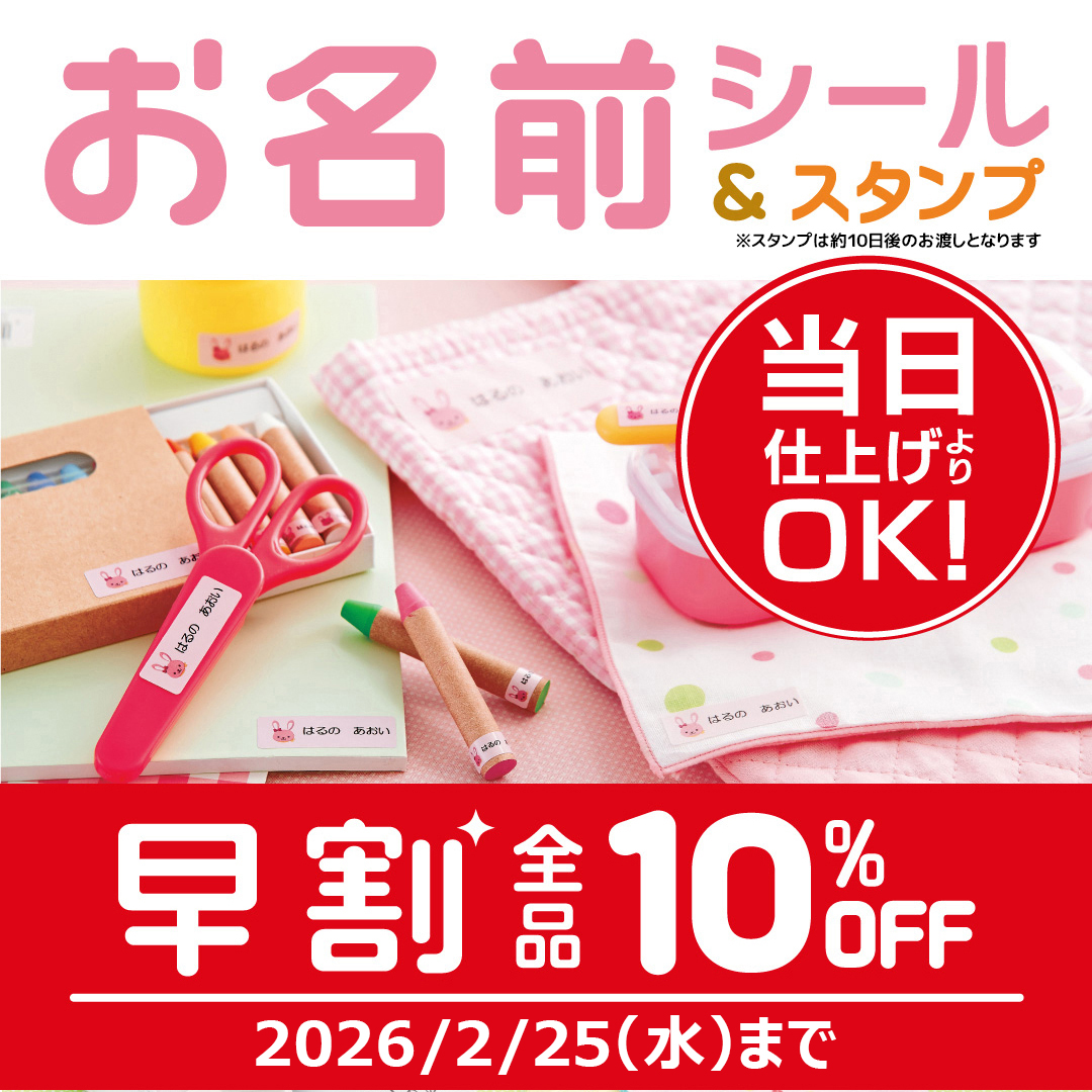 パレットプラザ お名前シール&スタンプ パレットプラザでは新入園・入学の準備に便利な、お名前シール&スタンプの早割10%引きセールを実施中です♪ 便利なネット注文をどうぞご利用ください。 ご注文はこちらから <沖縄県内3店舗> ・パレットプラザ具志川メインシティ店・パレットプラザつかざんシティ店・パレットプラザ那覇メインプレイス店