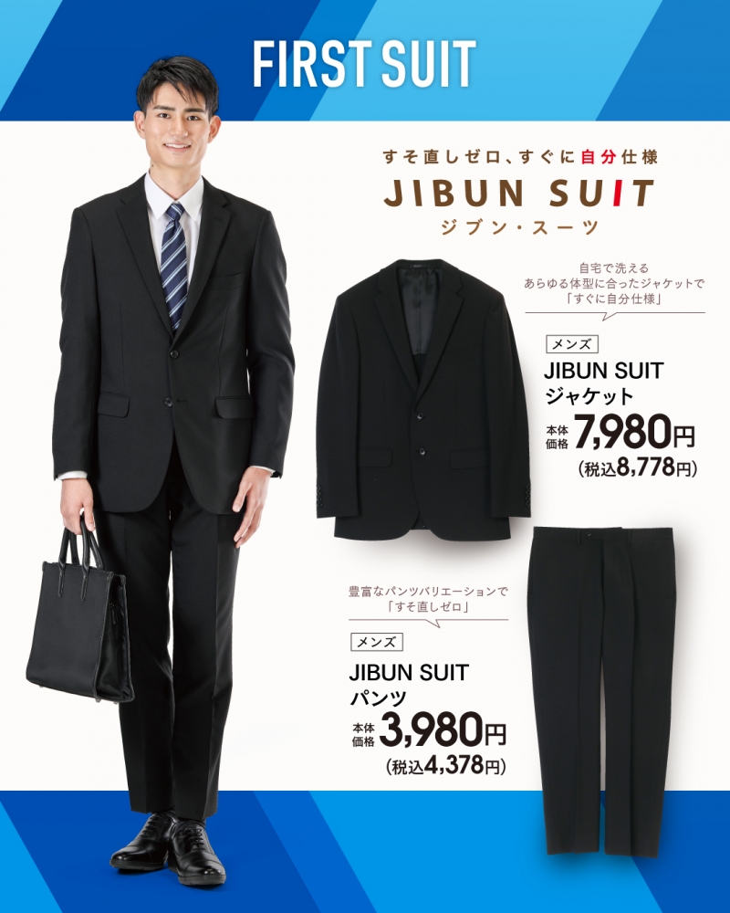サンエーのファーストスーツ はじめてのスーツ、失敗はしたくない。 挑戦するあなたを支える! サンエーのファーストスーツ ~JIBUN SUIT(ジブン・スーツ)~ ジャケットもパンツも豊富なサイズ展開。 自分仕様の一着。サンエーの「JIBUN SUIT」 詳細は画像をチェック👇 CM放映!JIBUN SUIT (ジブン・スーツ) 〇掲載商品は一例です。〇店舗により取扱商品が異なります。〇好評につき売り切れの際はご容赦ください。
